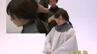 ロングヘアーのりつさん。髪を二つに束ねてバッサリと切り落としていきます。サラサラのツヤツヤの髪があっという間に肩上まで短くなってしまいました。櫛とはさみで少しずつ丁寧にカットしていきます。最後はショートボブのかわいらしい女の子に返信しちゃいました!!